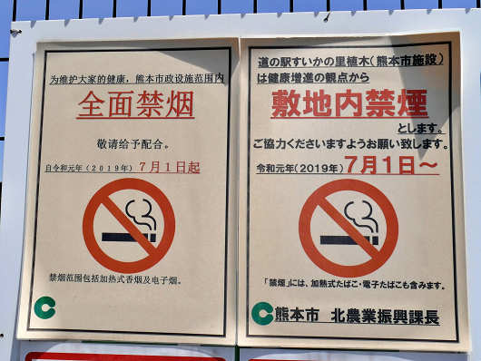 敷地内の一角にはこの様な貼り紙もありました。最近は健康増進のために病院や公共施設など敷地内禁煙のところが増えましたが、私がこれまでに訪れた道の駅で敷地内禁煙のところは、ここを除けば大分県の「道の駅 やよい」だけです。趣旨は理解できるんですが、道の駅は買い物などの他に、長距離運転をしてきたドライバーの休憩場所にもなっているので、喫煙者にとってはちょっと辛いですね。