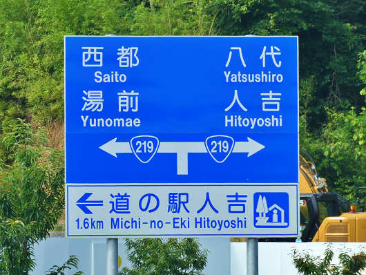 熊本県へ入ったら人吉球磨スマートICで九州道を降りました。前日はここで九州道を降りて八代方面へと右折しましたが、今日はここを左折して道の駅「人吉(ひとよし)」へと向かいます。ちなみに人吉球磨スマートICは えびのICと同じで乗り直し料金無料となっています。