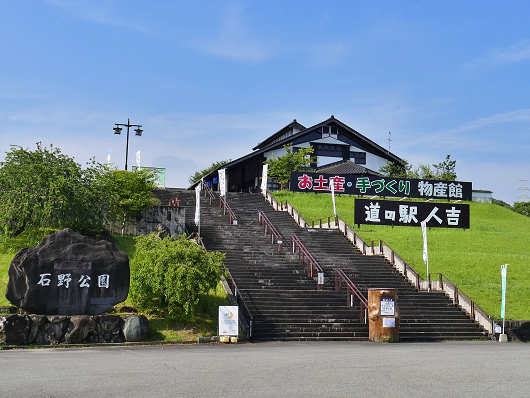 人吉球磨スマートICからは数分も走らずに道の駅「人吉(ひとよし)」に到着します。スマートICからこの距離なら、ゆっくり見物や買い物をしても一時間以内には余裕でスマートICへ戻れますね。