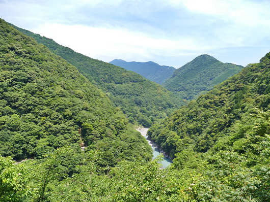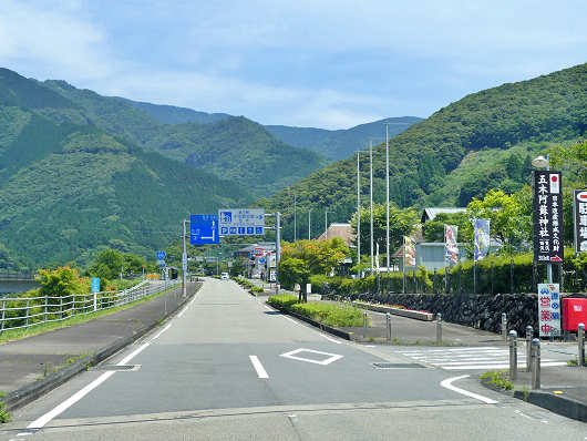 国道445号は五木村まで片側一車線の立派な道ですが、左側は深い渓谷になっていて、先を見るとどこまでも続くような深い山々が連なっているので、いかにも秘境に向かって走っているって感じです。