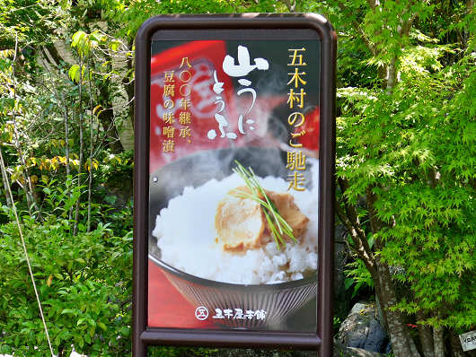 ここにはもうひとつこの様な看板もありましたが、五木村のご馳走といえば何といっても豆腐の味噌漬けを熟成させた「山うにとうふ」ですよね。私もりゅうママも大好物で、2年前にここを訪れた時には色んな種類を買って帰りましたが、今回は保冷ボックスを持ってこなかったので、残念ながら買うことができませんでした。