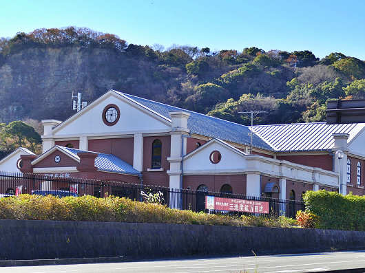 この交差点を右折せずに左折するとこの様な建物があります。ここは「万田炭鉱館」といって、館内には炭鉱に関する展示物などがあって無料で見物ができますが、今回は時間の都合でここは残念ながらパスです。