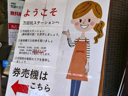万田坑ステーションの入口にはこの様な看板が立てられていて、ここで万田坑の入坑券を買うようでした。この日見てきた「宮浦石炭記念公園」と「宮原坑」は無料で見物ができましたが、ここだけは有料なんですね。