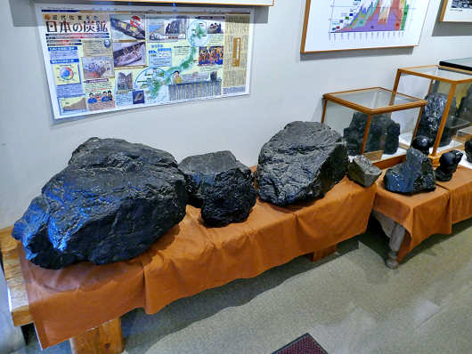 万田坑ステーションの館内は資料館になっていて、大きな石炭の塊や万田坑のジオラマなどもありました。ここにもボランティアの人がいて詳しい説明を無料でしてくれました。興味深かったのは、山で焚火をしていると露出していた石炭が燃えて、石炭(燃える石)発見のきっかけになったことや、この一帯の石炭層は海に向かって斜め下へと延びていて、海底の地層にはまだ膨大な埋蔵量があるが、深すぎて採算が取れないために閉山になったそうです。