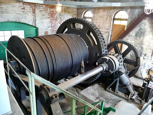 見学順路は炭鉱電車までで、電車を展示している場所からはUターンして入口へと戻り、巻上げ機室の見物をしました。