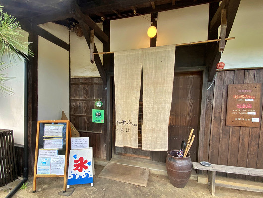 ここがお食事処の玄関です。建物は江戸時代に建てられた築190年ほどの古民家を改装しているそうで、田舎のおばあちゃん家へ帰ったような気がする居心地のよさそうな雰囲気のお店でした。