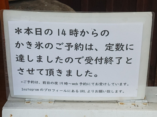玄関にはこの様な貼り紙もあって、この日は予約で満席になっていました。ここはweb予約のみで15分刻みで予約をしますが、前日の19時になったらすぐに予約をしないと満席になってしまうので、りゅうママは頑張ってようやく15時の予約がとれたんですよね(笑)