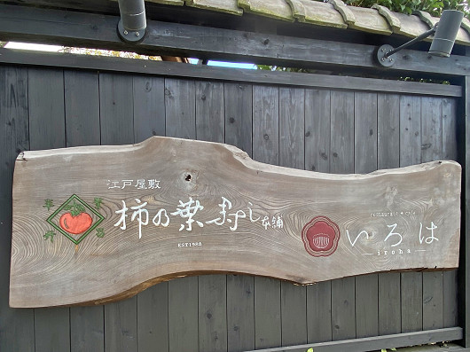 ここが予約もできないほど人気のかき氷のお店の「レストラン&カフェ いろは」です。看板には「江戸屋敷 柿の葉寿し本舗」とも書かれていますが、元々は大津町内で柿の葉寿しの販売をしてたお店が、併設する食事処の「いろは」と共に数年前にここへ移転したそうです。