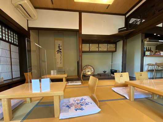 店内はこんな感じで畳の上に置かれた座卓、座椅子の席がいくつかと、足の付いたイス、テーブル席もありました。