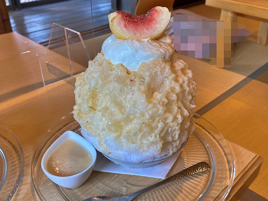 桃レアチーズには桃のソースをかけて食べましたが、レアチーズの上に乗った完熟桃はとても甘くて、氷もふわふわでとっても美味でした。