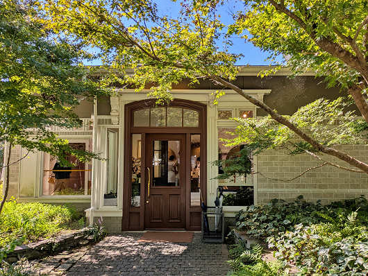 何とか駐車場に車を停めたらさっそく店内へと向かいました。緑に囲まれた中に建つお洒落な雰囲気の建物はとてもいい感じですね。