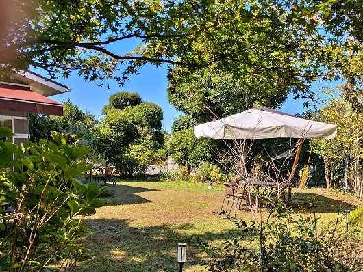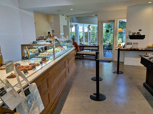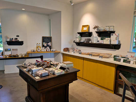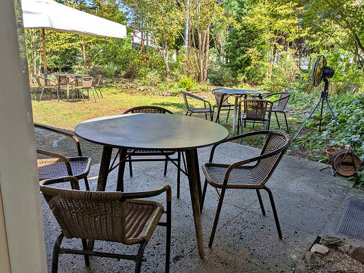 昨年ここを訪れた時にはカフェスペースが満席で、順番待ちの人も何人かいましたが、今回はタイミングよく私たちが訪れたのとほぼ同時に、何組かのお客さんが出て行ったので、全く待たずに席に座れました。この日は木陰では涼しい風も吹いていたので、昨年と違って今回は屋外席でもよかったんですけどね。