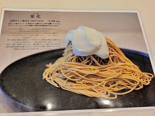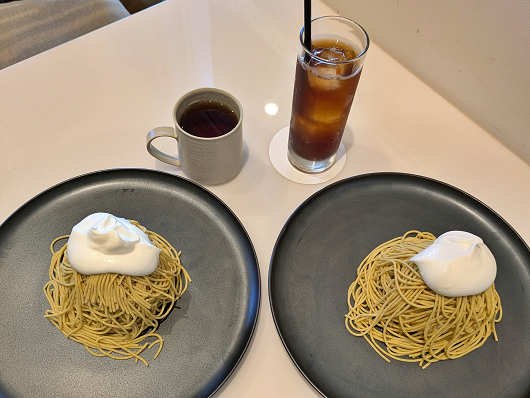 席に座ったらさっそく注文です。山鹿市は西日本一の和栗の生産地なので、昨年と同じようにこの時季限定の山鹿和栗を使ったモンブランの「栗花(りっか)」を注文しました。このお店の名前も「ricca(リッカ)」なので、これがこのお店のイチオシのスイーツなんでしょうね。