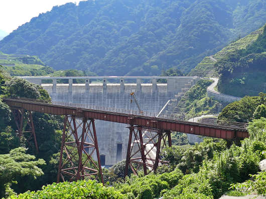立野まで来たら立野ダム展望台へ向かいました。ここからは立野ダムと南阿蘇鉄道の立野橋梁が見えますが、今回はここで立野橋梁の上を走る列車を撮影しようとノンストップで走って来たのに、列車は5分ほど前にすでに橋梁を通過していました。次の列車が通るのは1時間以上も先なので撮影は残念ながら断念しました。ちなみに画像に写っている立野ダムは玉来ダムと同じで、通常時は水を貯めない流水型ダムなんですよね。