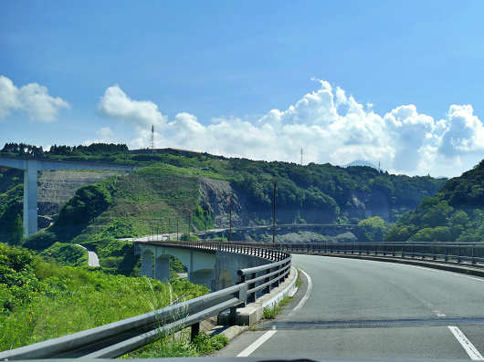 田園の中を走る道はしばらくすると県道28号と合流して、ここからは熊本空港方面へ進みました。県道28号はこの先で長いトンネルを潜って阿蘇盆地を抜けますが、左折する道は俵山の峠越えをする急坂、急カーブの道で阿蘇盆地を抜けます。
