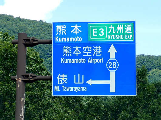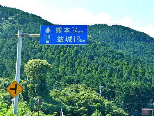 大峯山と高遊原台地展望所を出発すると、すぐにこの様な標識が見えてきました。下り坂はまだしばらく続きますが、県道28号が平地になった辺りからはもう益城町(ましきまち)になるんですよね。