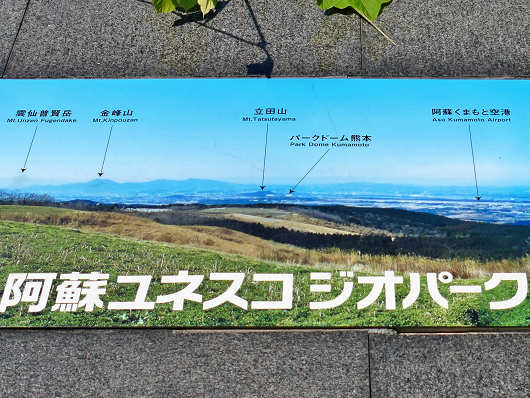 俵山トンネルを抜けると視界が一気に開けて、熊本空港や熊本市方面の景色を眺めながらの長い下り坂となるので、途中にある展望所で車を停めました。ここは「大峯山と高遊原台地展望所」といいますが、ここからは空気の澄んだ日には有明海や雲仙普賢岳も望むことができます。
