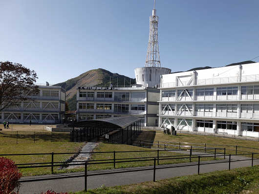 猿まわし劇場を通り過ぎて県道298号を1kmも走ると、東海大学阿蘇キャンパスへ到着です。