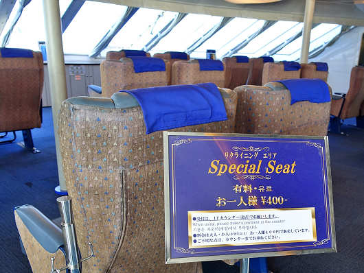 船首付近にはリクライニングシートの有料席もありました。でも島原までは僅か30分の船旅ですから利用する人は多くないでしょうね?