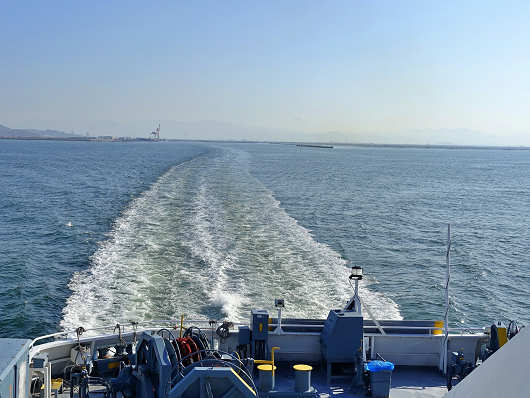オーシャンアローはしばらくすると速度を上げて、熊本港があっという間に小さくなっていきました。到着港の島原外港は長崎県島原市なので、今回の旅行記の中で熊本県の記事はここで終わりなんですよね(笑)
