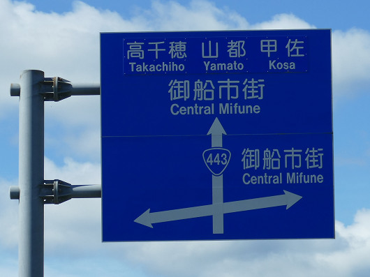 日の丸扇を車窓から眺めたら、国道57号の北側復旧道路(自動車専用道路)を走って阿蘇盆地を抜け、大津町 ⇒ 菊陽町 ⇒ 益城町を経由して御船町へと入りました。