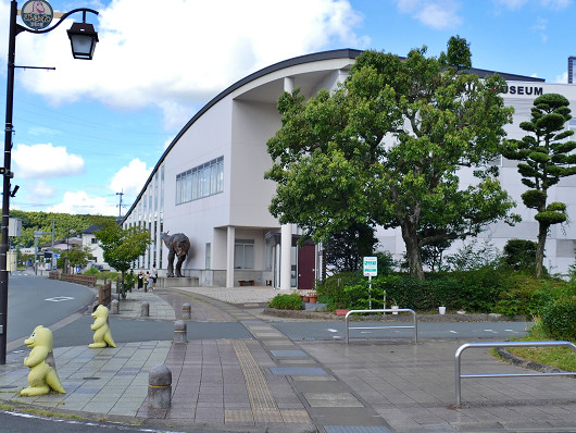 3体の恐竜のモニュメントが立つシンボルロードを100mも進むと、御船町役場と御船町恐竜博物館が見えてきます。