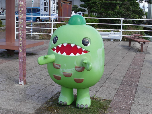 そして歩道の所々には可愛らしい恐竜の姿をした、御船町のマスコットキャラクターの「ふねまる」も立っていました。