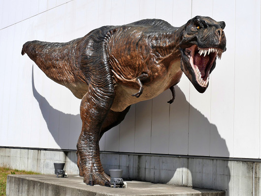御船町恐竜博物館の前にはこの様なリアルなティラノサウルスの巨大なモニュメントがありました。
