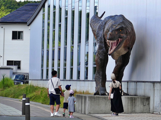 この時はちょうど親子連れがやって来て、この巨大なティラノサウルスのモニュメントを眺めていましたが、ティラノサウルスの巨大さがよく分かりますね。