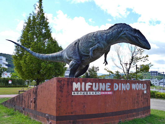 御船町恐竜博物館からシンボルロードをさらに進むと、広場があってここにも巨大な恐竜のモニュメントがありました。この恐竜はカルカロドントサウルスというそうです。
