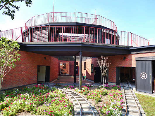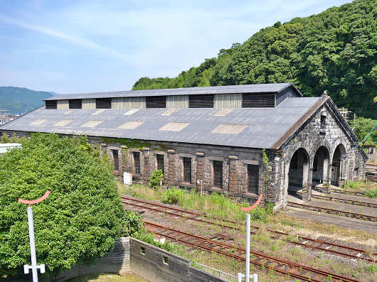 屋上の展望デッキにも上がってみましたが、ここからは明治時代に造られた機関庫がすぐ目の前に見えました。この機関庫は近代化産業遺産に指定されているそうです。