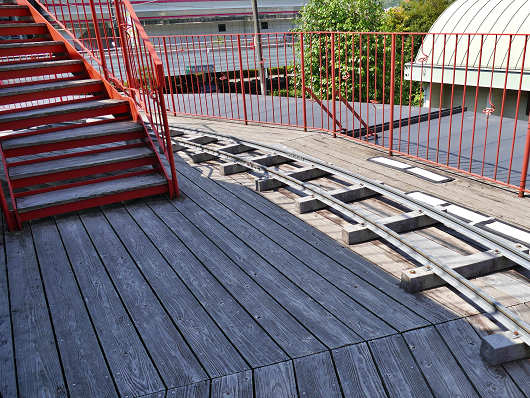 2階にはミニ図書館もありましたが、その外にも建物をぐるりと廻るようにレールが走っていました。
