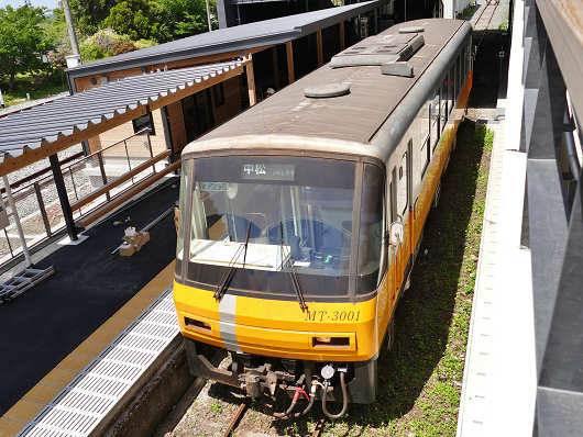 この時はちょうどJRの列車がホームに停車していましたが、JRのホームは駅舎を出て線路を渡った先にあって、ホームまで行くには雨除けの屋根も無い通路を歩くのに対して・・・