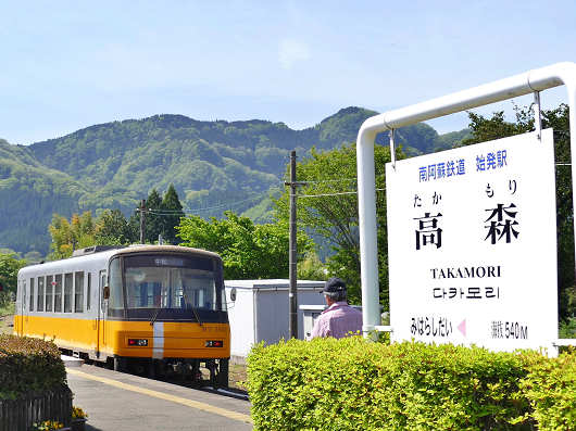 そして駐車場があったところには真新しい建物が建っていました。近くにいた駅員さんに聞いたら、この建物は高森駅の新駅舎で、周辺工事はまだ終わってないけれども、GW中には運用を開始する予定だと言っていました。ここを訪れたのはGWの直前でしたが、今では工事も完了しているんでしょうね?