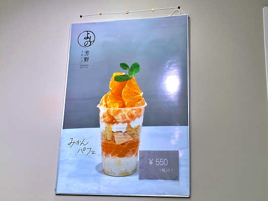 でもりゅうママのお目当ては今が旬のみかんを使った「みかんパフェ」のようでした。普段なら私もりゅうママに付き合って何かを注文するんですが、この時はいちごのパフェをたっぷりと食べた後だったので、さすがにりゅうママにお付き合いはできませんでした(笑)