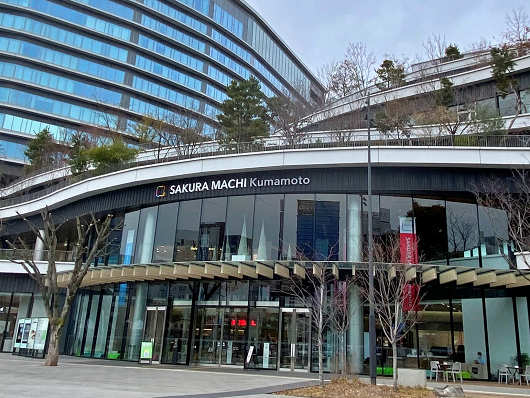 熊本城二の丸駐車場に車を停めて最初に向かったのは、熊本城に隣接する複合施設の「サクラマチ クマモト」です。この建物内にも駐車場はあるんですが、後から熊本城の見物予定があるし、何よりもここは駐車料金がお高いんですよね(笑)