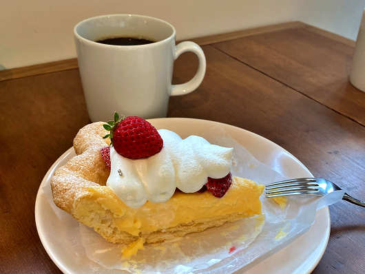前回はテイクアウトをしましたが、ここには狭いながらもイートインスペースもあるので、今回は店内でスイーツをいただくことにしました。