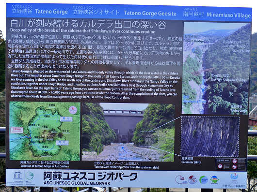 立野ダム展望所には立野ダムや、立野ダムが建設されている白川の深い渓谷の地質などについての説明板があります。