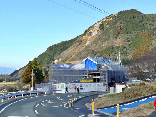 立野ダム展望所を出発したら、すぐ近くのJR、南阿蘇鉄道の立野駅へも行ってみました。ここは工事の真っ最中だったので車を停めてゆっくりと見物はできませんでしたが、すでに新しい駅舎の姿が現れていました。
