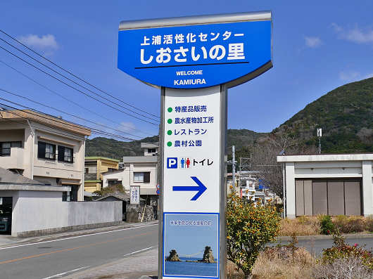 浅海井駅から国道217号を津久見市方面へ戻り始めたら、すぐに道路沿いに「上浦活性化センター しおさいの里」と書かれた看板が見えてきたのでここに車を停めました。