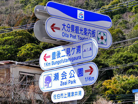 敷地内にはこの様な標識も立てられていて、マリノポリス記念公園から見えていた「豊後二見ヶ浦」はこのすぐ近くにあるようですね。
