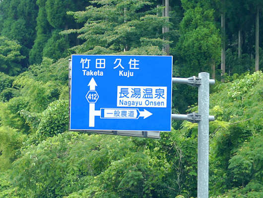 国道442号は豊後大野市の手前まで来たら、車同士のすれ違いが厳しい「酷道区間」になるので、途中からは県道412号(久住高原 野津原線)を進みました。