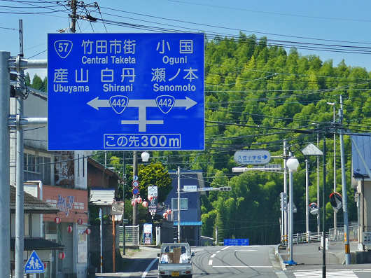 県道30号を2㎞ほど進むと、竹田市久住町の町中を抜けて国道442号へ出るので、ここを右折して熊本県小国町方面へと進みました。