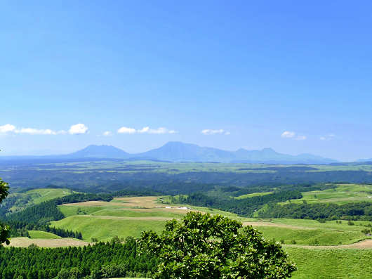 そして左側を眺めると、なだらかな草原の向こうには、阿蘇五岳が望めるとても風光明媚なところなんですよね。
