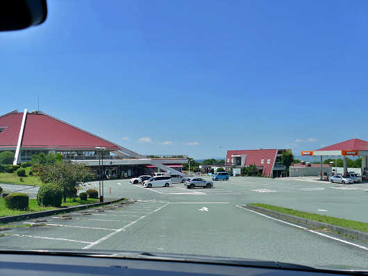 交差点を直進してやまなみハイウェイを横切ると、すぐに広い駐車場といくつかの建物が見えてくるのでここに車を停めました。