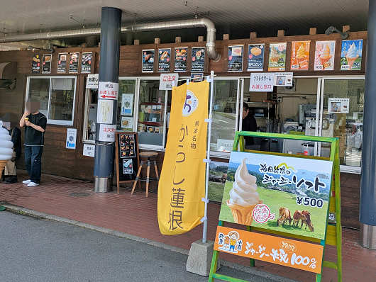 建物の入口にはソフトクリームや、からし蓮根などのテイクアウトのお店があります。このお店のジャージー牛乳で作ったジャージーソフトはとても美味しくて観光客にも人気なんですよね。