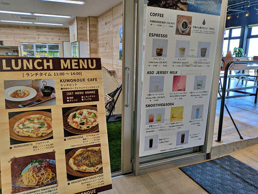そしていちばん奥にあるのが「雲の上カフェ」です。入口に掲示されていたメニュー表を見ると、ここではドリンクなどの他にランチメニューとしてピザやパスタなどもいただけるようでした。