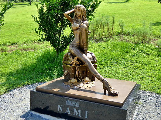 第二駐車場の一角には「ワンピース熊本復興プロジェクト」の一環として設置された麦わらの一味のナミ像が建てられていました。