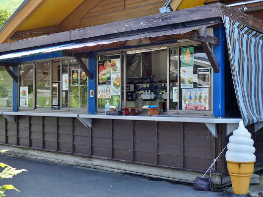 物産館の入口付近にはソフトクリームなどのテイクアウトのお店がありました。この日は気温が35℃を超える猛暑日だったからなのか?お客さんが途切れることなく訪れていましたが、もしかしたら西原村では人気店なのかも知れませんね。