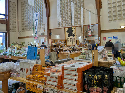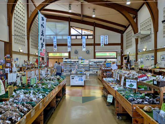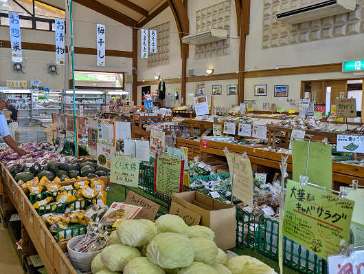 館内はこんな感じで、地元産の野菜などが所狭しと並べられていて、お客さんが次々と野菜を買っていましたが、お土産品や弁当、総菜などもかなり充実していました。